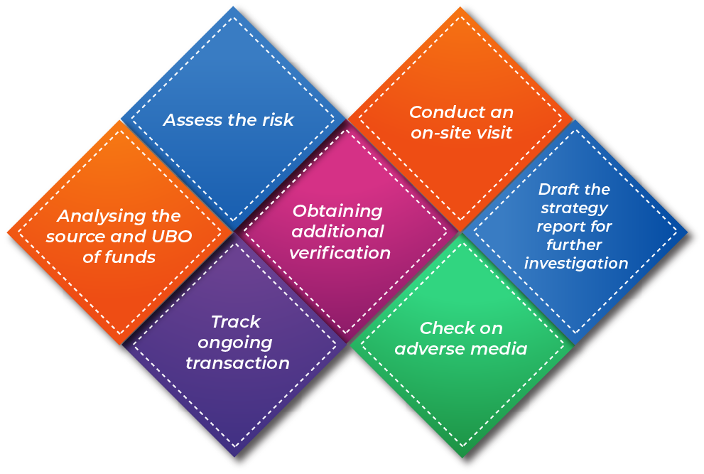 Enhanced due diligence provides you with a high level of scrutiny of the customer base of an organisation. Whereas, it is specifically designed to identify high-risk customers and large transactions.