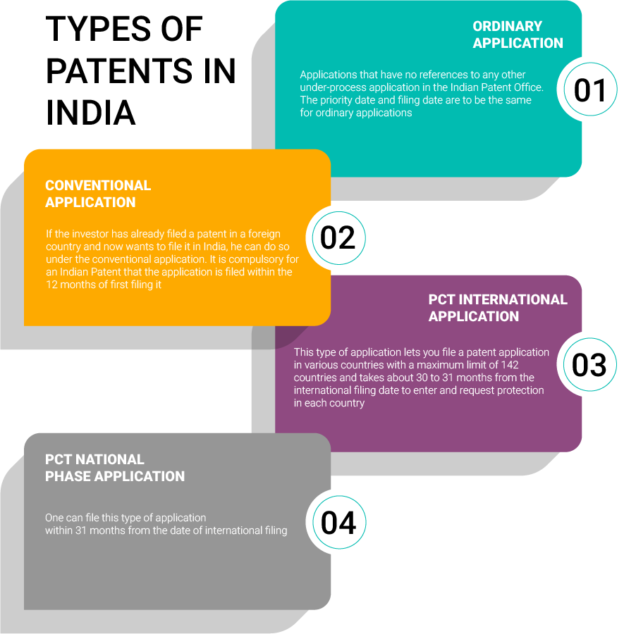 • Conventional application: If the investor has already filed a patent in a foreign country and now wants to file it in India, he can do so under the conventional application. It is compulsory for an Indian Patent that the application is filed within the 12 months of first filing it.
